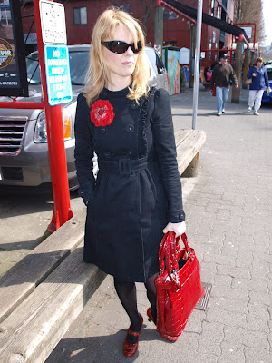 a quintessential vancouverite returning from yoga? not quite. she could have reinforced the stereotype and worn full regalia from lululemon but she wore this fantastic coat that made me take notice. and nice touch not wearing new balance runners...